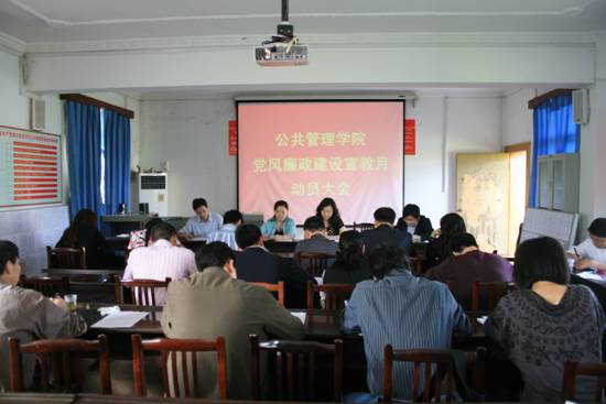 5月4日下午,公共管理学院分党委召开了党建工作会安排部署党风廉政建设宣传教育月活动,公管学院领导及各支部书记、教研室、实验室主任参加了会议。