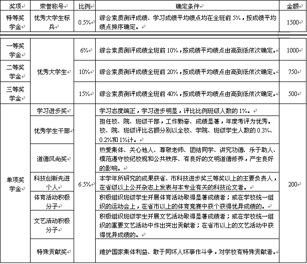 注:我校一二年级学生凡本学年体能测试成绩和体育成绩均不合格者不参加奖学金的评定,无体育课及体能测试的年级,各学院可在公平的原则下合理处置。