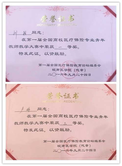 “全国高校医疗保险专业青年教师教学大赛”是“第一届中国医疗保险教育论坛论坛”的主要议程之一,本次论坛以“提高医疗保险教学水平和教学质量,推动我国医疗保险事业发展”为主题。在教学比赛中,来自近20所院校选送的20余位青年教师各显其能,精彩纷呈,最终我院刘颖老师主讲的《医疗保险统计学》和保险学教研室卢婷老师主讲的《医疗保险学》分别获得青年教师教学比赛的一等奖和三等奖。