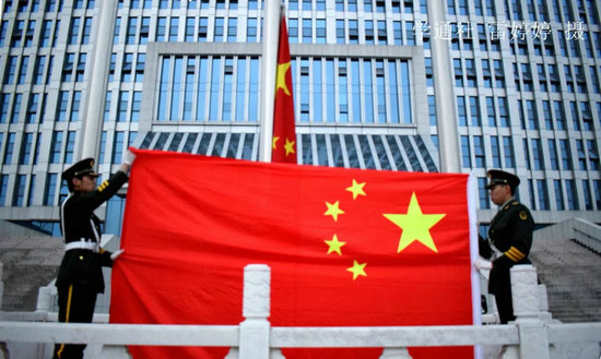 7点整,迎着第一缕晨光,英姿飒爽的国旗护卫队员们踏着整齐的步伐走向国旗台。在雄壮的国歌声中,全体师生注视着鲜艳的五星红旗冉冉升起。