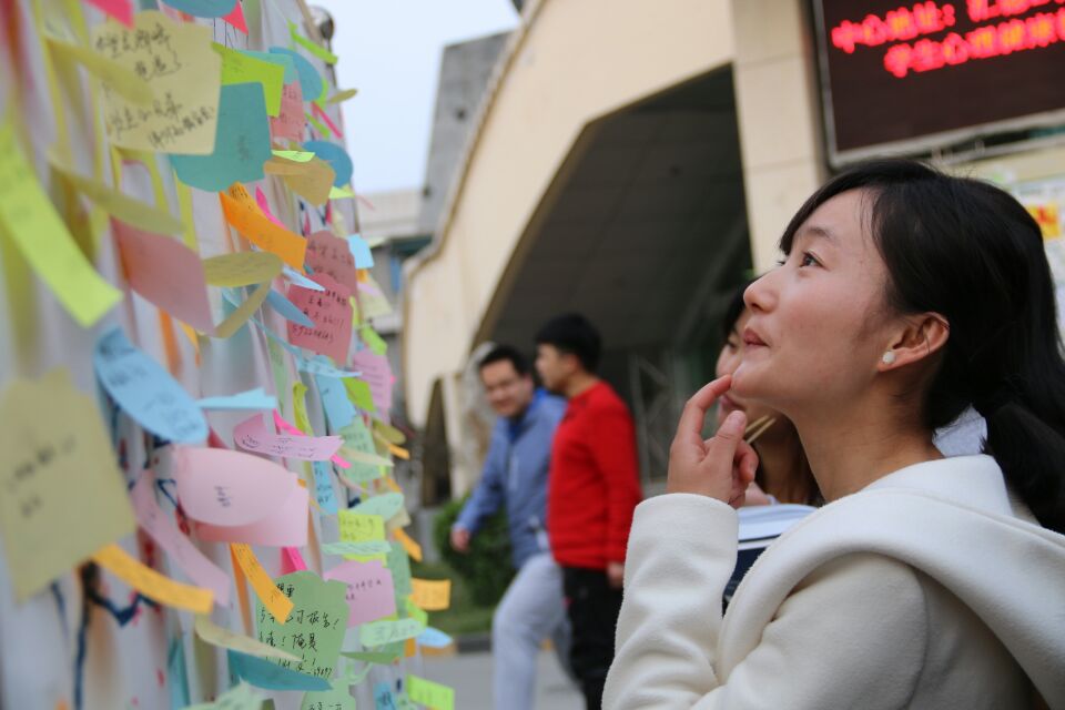 活动现场,路过的女生们纷纷许下自己的愿望:“希望能得到一份免费早餐”、“英语过级”、“交一个能一路废话的朋友”、“看一场期待已久的电影”……不一会,心愿墙上就贴满了各种各样的愿望。
