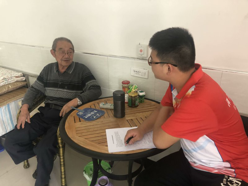 热情的梅爷爷向队员讲述着自己年轻时的故事,他说他一生艰辛坎坷,一生中不如意的事情很多,很多人不支持他,但他一直努力坚持,不忘初心,坚持自己的决定,积极面对失败,永不放弃。队员也与梅爷爷畅聊自己的大学生活及未来规划,他对队员说:“年轻就要去拼去闯,要不怕吃苦,不怕失败!”在离开时,梅爷爷还十分不舍,想与队员再畅谈过去与未来!